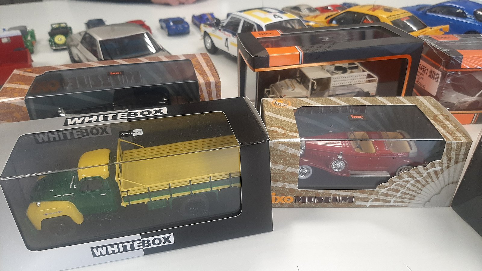 Jean-Louis est revenu et nous a apporté encore de belles miniatures. 2 Kits qu'il a réalisé lui même et pour une fois toutes les autres miniatures sont soit des séries presses (série voiture de luxe) soit des versions boutiques de marque Norev et Ottomobile pour le 1/18e et de la marque Voxxi9 pour la E-Legend au 1/43e.
