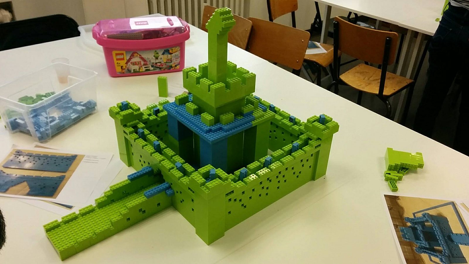 En un peu plus d'1h30 de temps les châteaux se sont érigés fièrement (4 à 6 participants par construction).
