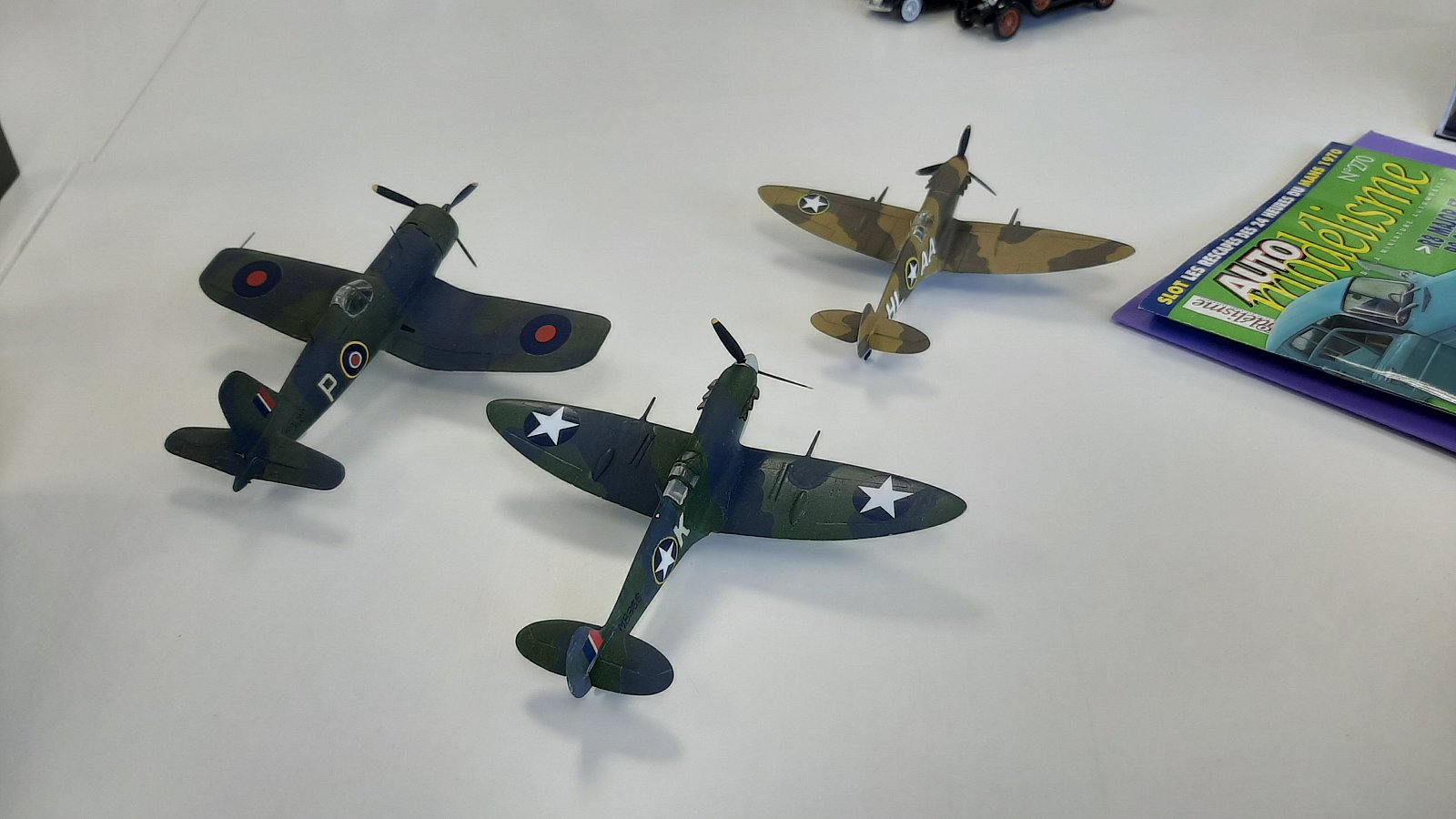 Deux membres de la section maquettes ont fait un p'tit coucou en tant que voisins. Notamment Gérard qui est venu présenter 3 avions de la seconde guerre mondiale. Ce sont des maquettes plastiques à l'échelle 1/72e. (2 photos ont été prises)