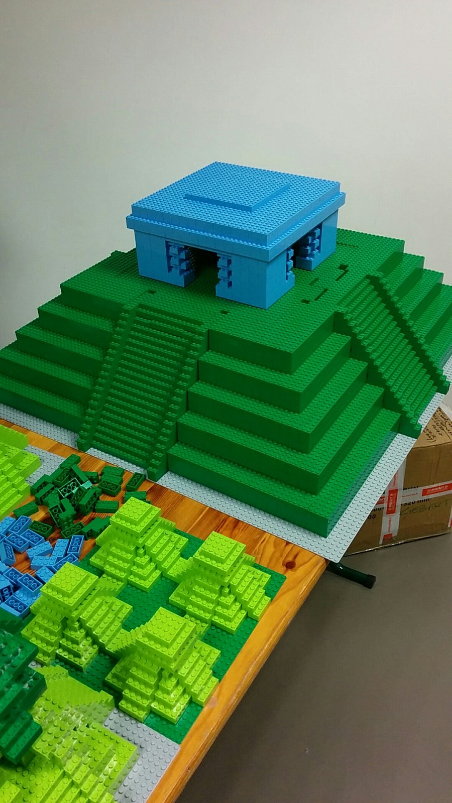 Nous avons été un peu trop optimiste pour le maxi temple car il aura fallu plu de 3 heures pour construire deux temples (et encore en trichant un peu par rapport au modèle original prévu).