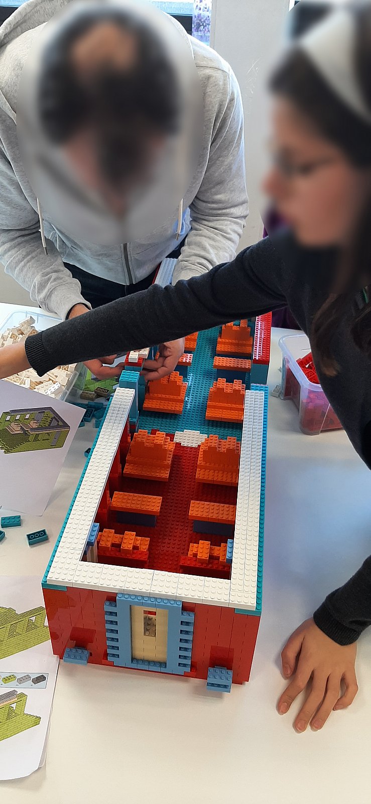 Comme pour le 1er groupe les roues et toits n'ont pu être réalisés qu'une fois pour l'ensemble des tables, alors on a joué à se passer les roues et les 3/4 de toit pour faire des 'wagons' presque complets.