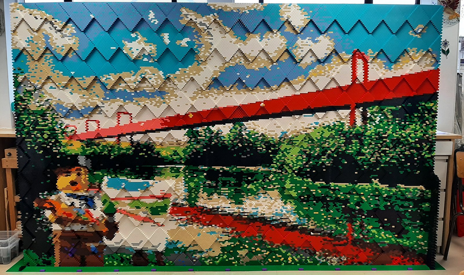 Mine de rien elle fait 34475 briques, 290cm de largeur pour 184cm de hauteur et pour un poids de plus de 80kg.