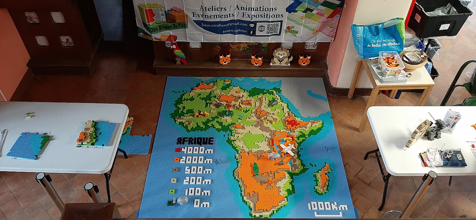 Le thème du festival était l'Afrique et l'Océanie, la section briques a donc créé des ateliers participatifs pour réaliser une carte de l'Afrique et une de l'Australie ainsi que quelques animaux de ces lieux.