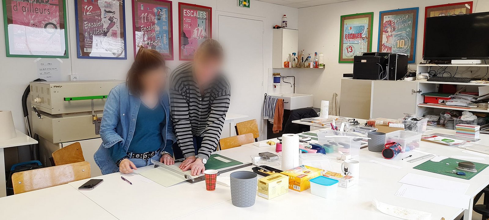 Nous avons fait un atelier scrapbooking supplémentaire pour préparer les portes ouvertes de Loisirs & Culture. Nous étions 3 mais nous avons été efficaces : nous avons préparé près d'une cinquantaine de marque-pages à personnaliser !