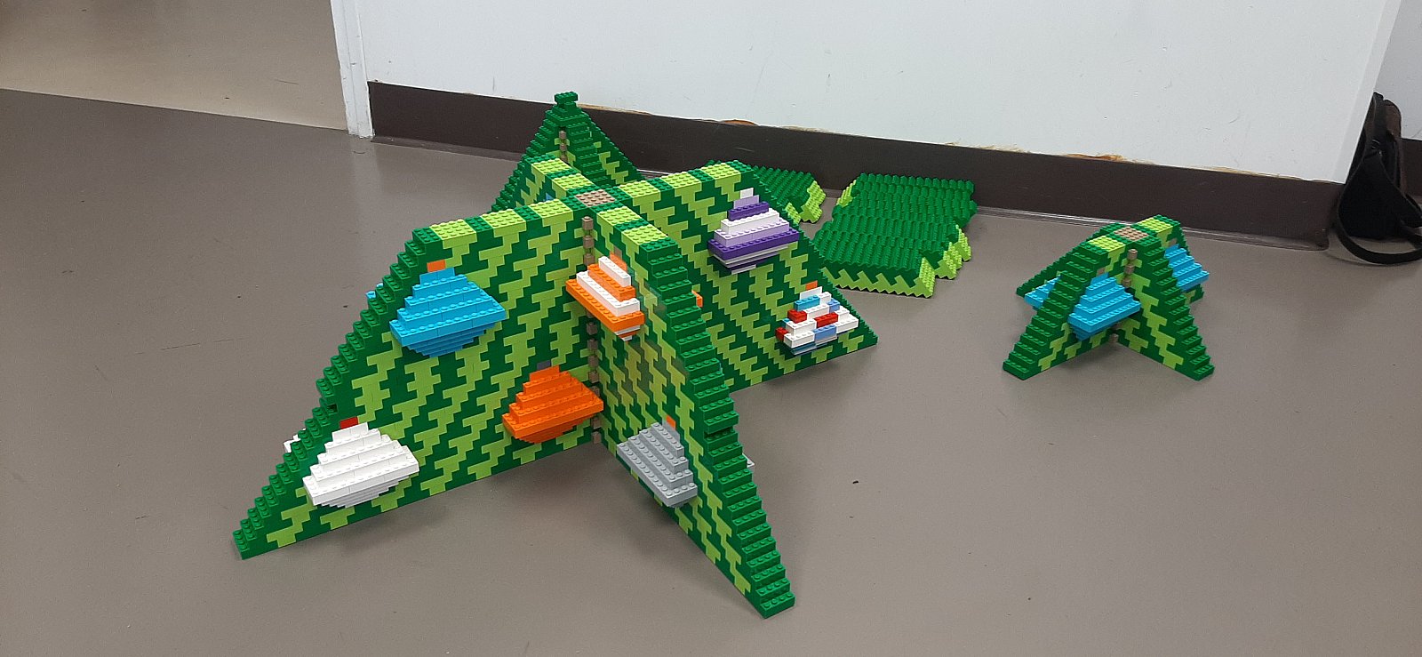 Vous verrez un sapin qui avance bine, mais qui au final a eu un loupé.. la faute à l'animateur qui a mal compté et positionné une rangée de plus à la base... Sic